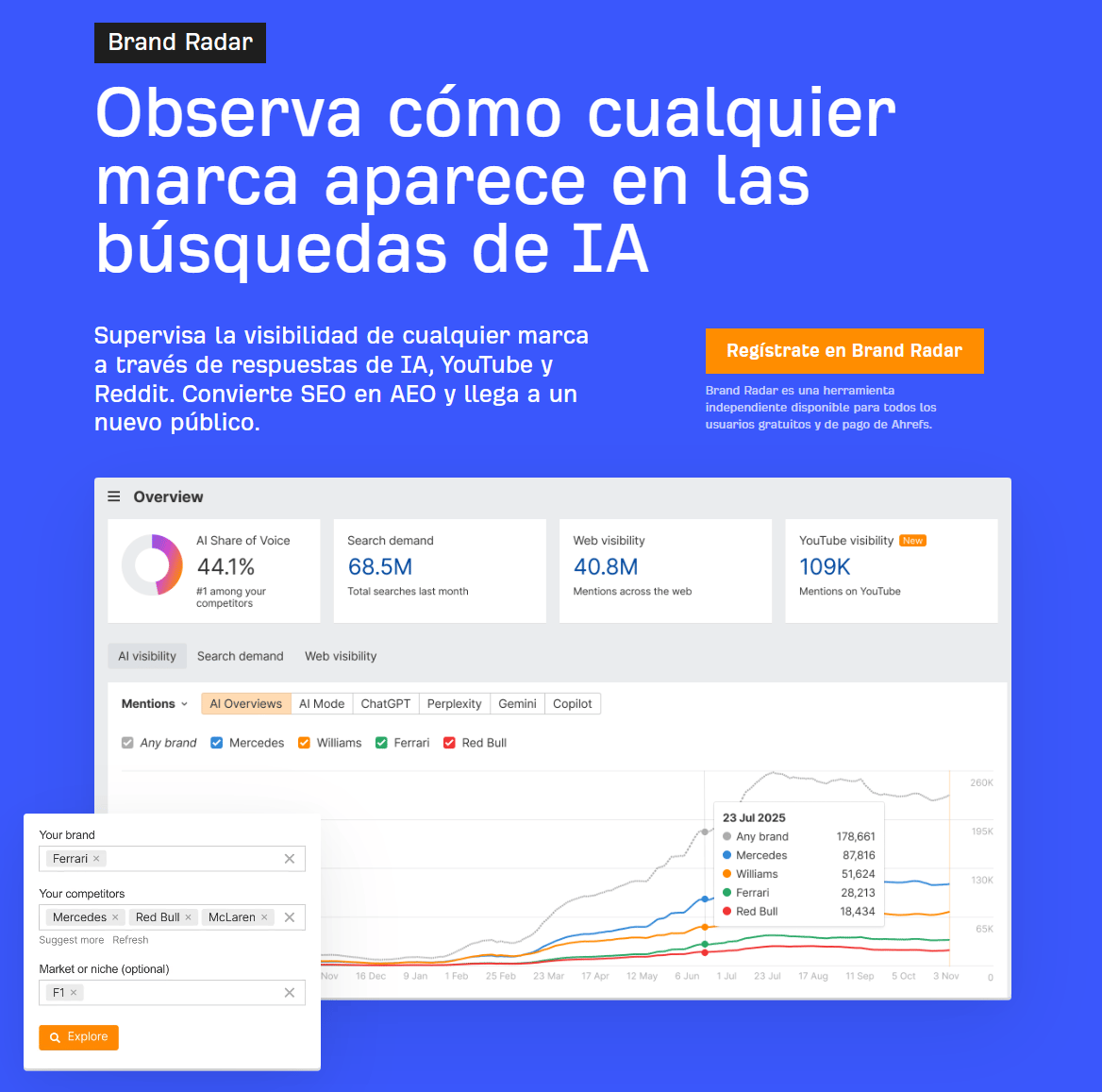📍 Hoy colabora con nosotros Brand Radar, la nueva herramienta de Ahrefs para controlar si tu marca aparece en los LLM, TikTok, Reddit y más.