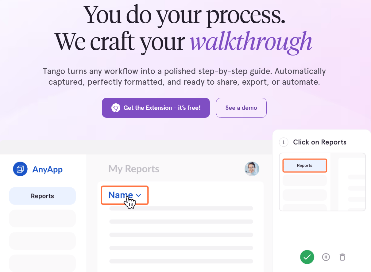 Tango graba tus clics en el navegador y genera automáticamente un tutorial con capturas anotadas de cada paso