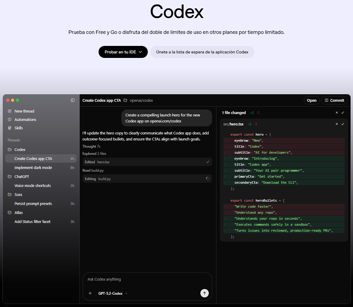 OpenAI busca recuperar el terreno perdido en el desarrollo de software asistido. Al sacar los agentes del chat y llevarlos a un entorno de escritorio nativo (similar a lo que hacen Windsurf o Cursor), intentan que la IA deje de ser un consultor externo para integrarse profundamente en el flujo de trabajo real de los programadores.